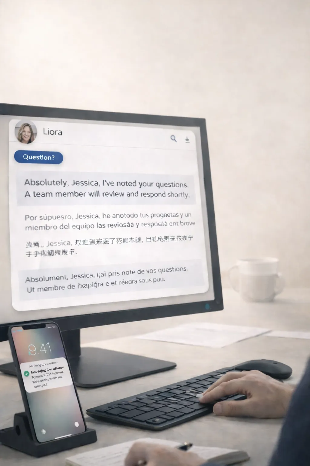 Liora is designed to sound calm, clear, and aligned with your brand voice.